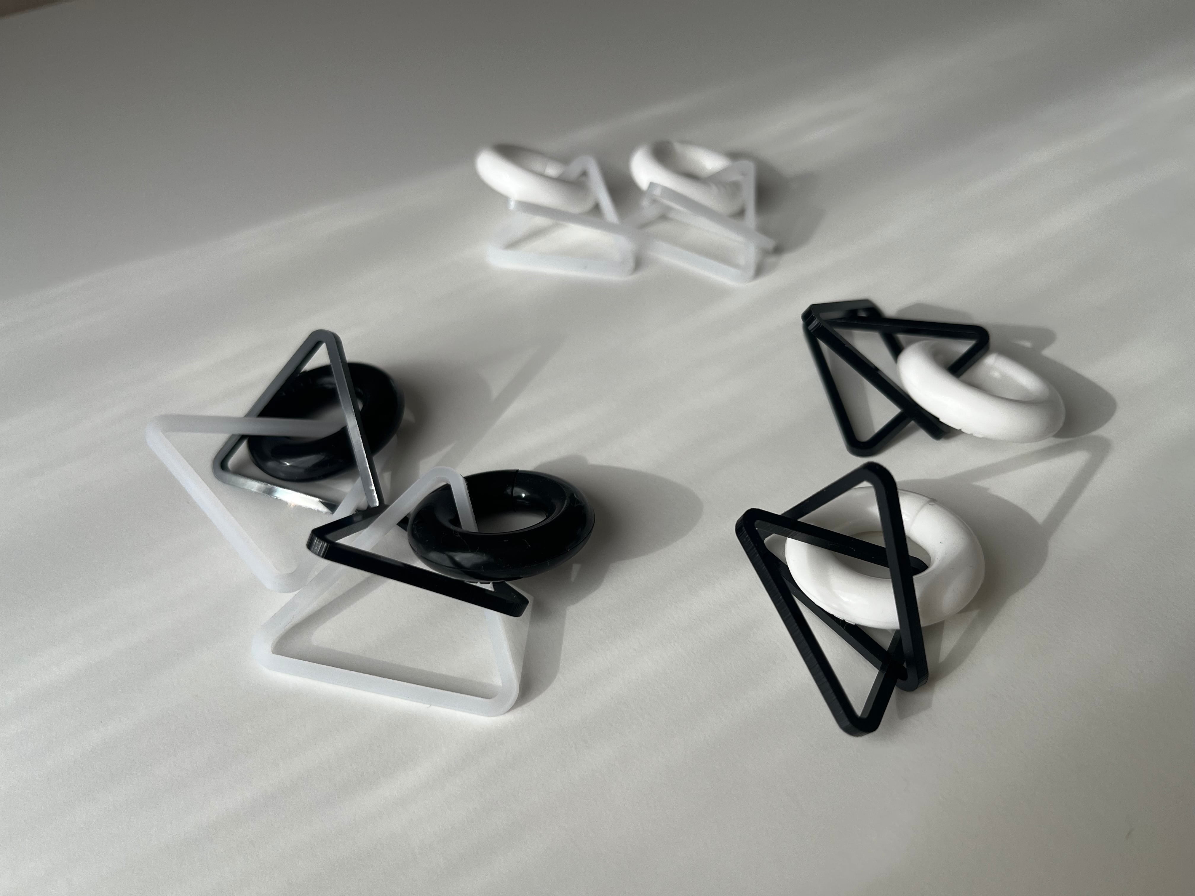 ⚪️モノクロの三角形のパーツはモードな雰囲気⚫️