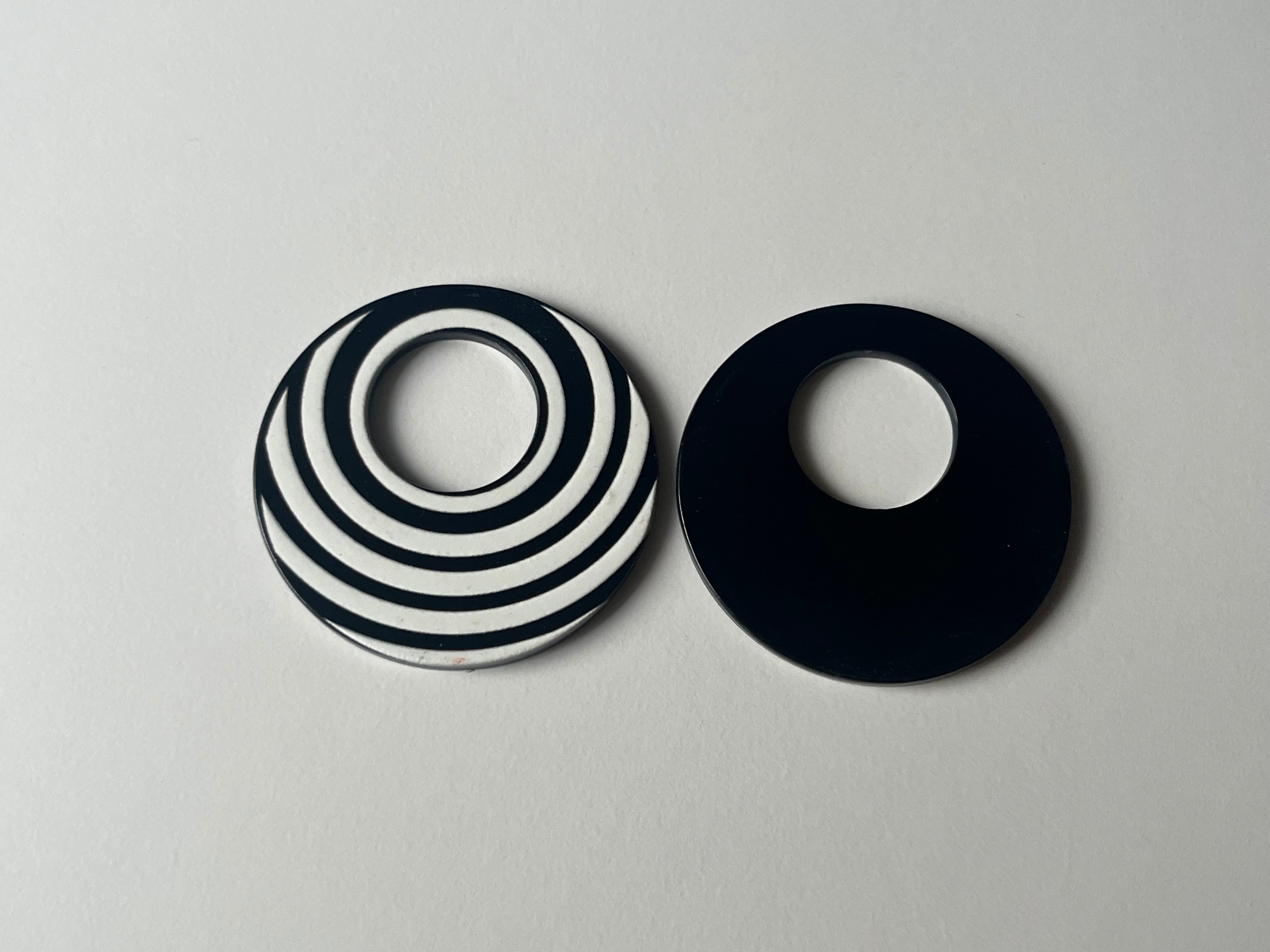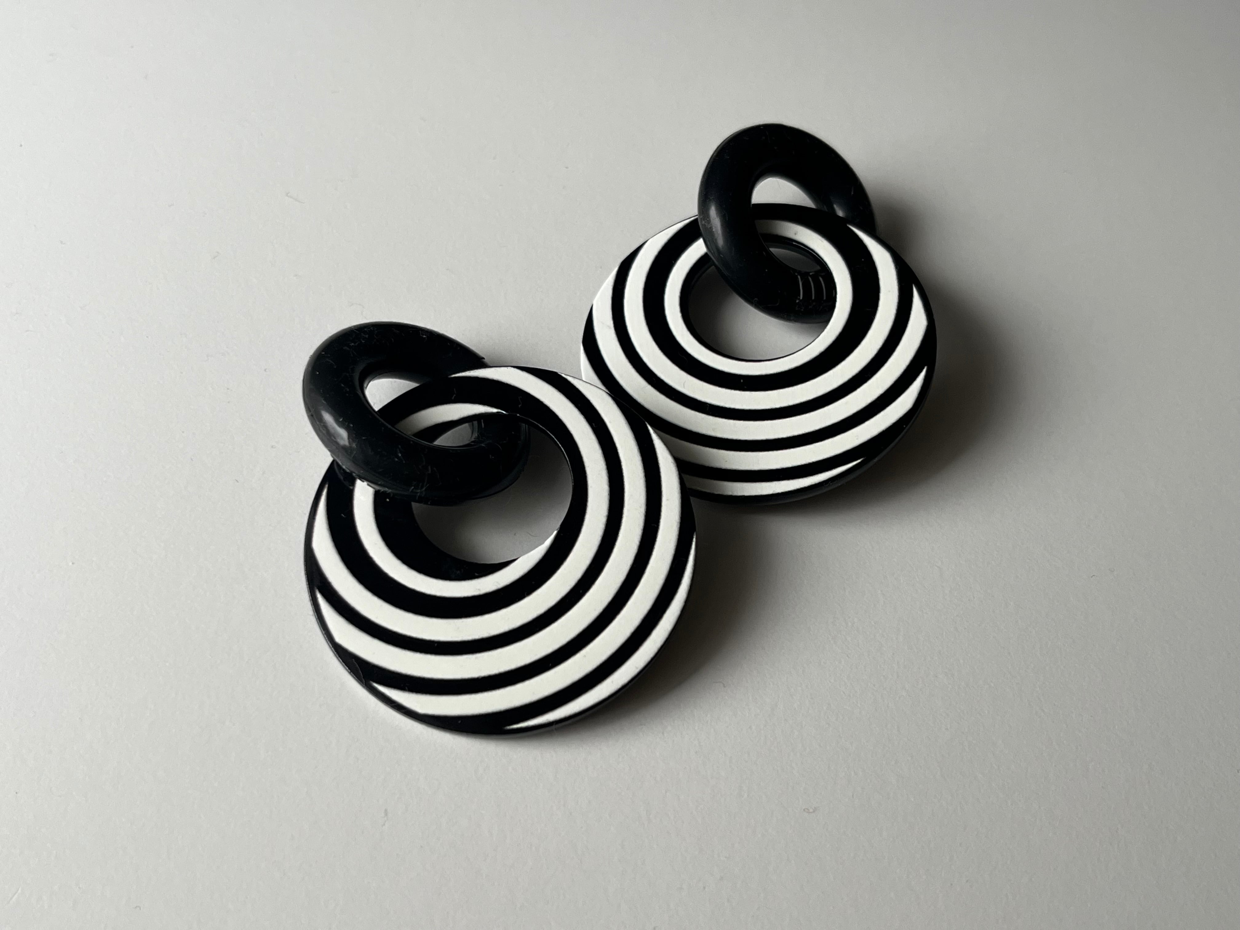 ストライプ柄の目を惹くアクリルパーツ。